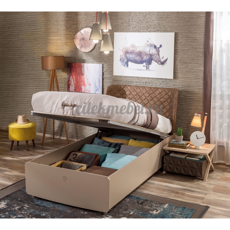 Интересная кровать, оснащенная подъемным механизмом, марки Cilek Lofter будет прекрасным местом для сна и выполнит функцию хранилища постельных предметов, а также подушек и одеял. Созданная в светлых тонах под деверо, наполнит внутреннюю обстановку теплом и домашним уютом. Благодаря специальной ручке, кровать легко поднимается и под ней появляется удобный и просторный ящик для хранения. Изготовлена из ЛДСП на основе древесной стружки, что наделяет изделие износостойкостью и долговечностью. Рекомендована для обустройства комнаты мальчика-подростка, жизнерадостного и уверенного в своих силах. Станет замечательным дополнением к остальным предметам мебели данного стиля и направленности, а также добавит комфорта в течение ночного сна или дневного отдыха.